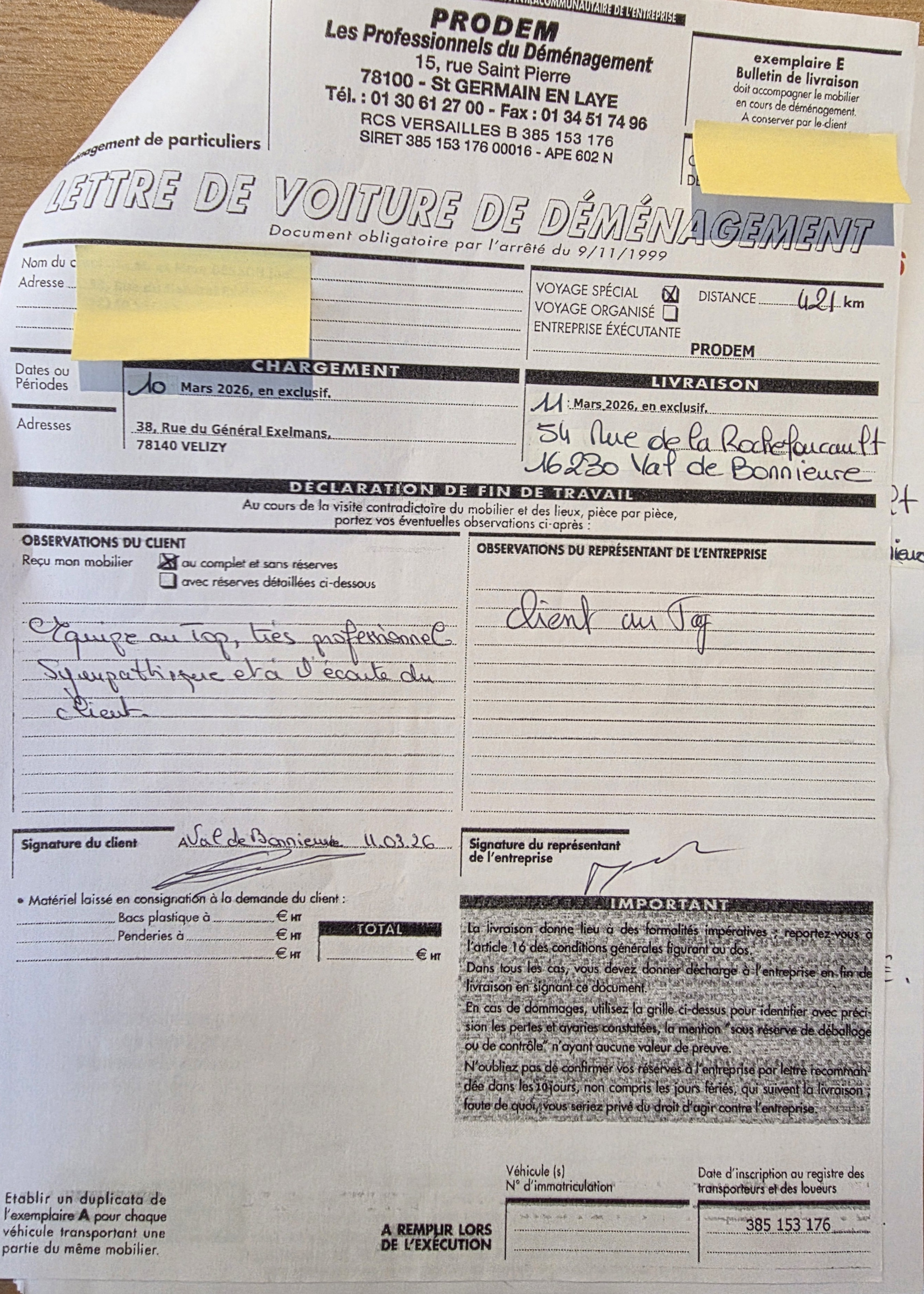 Déménagement Mars 2026, de Velizy (78) à Val de Bonnieure (16).