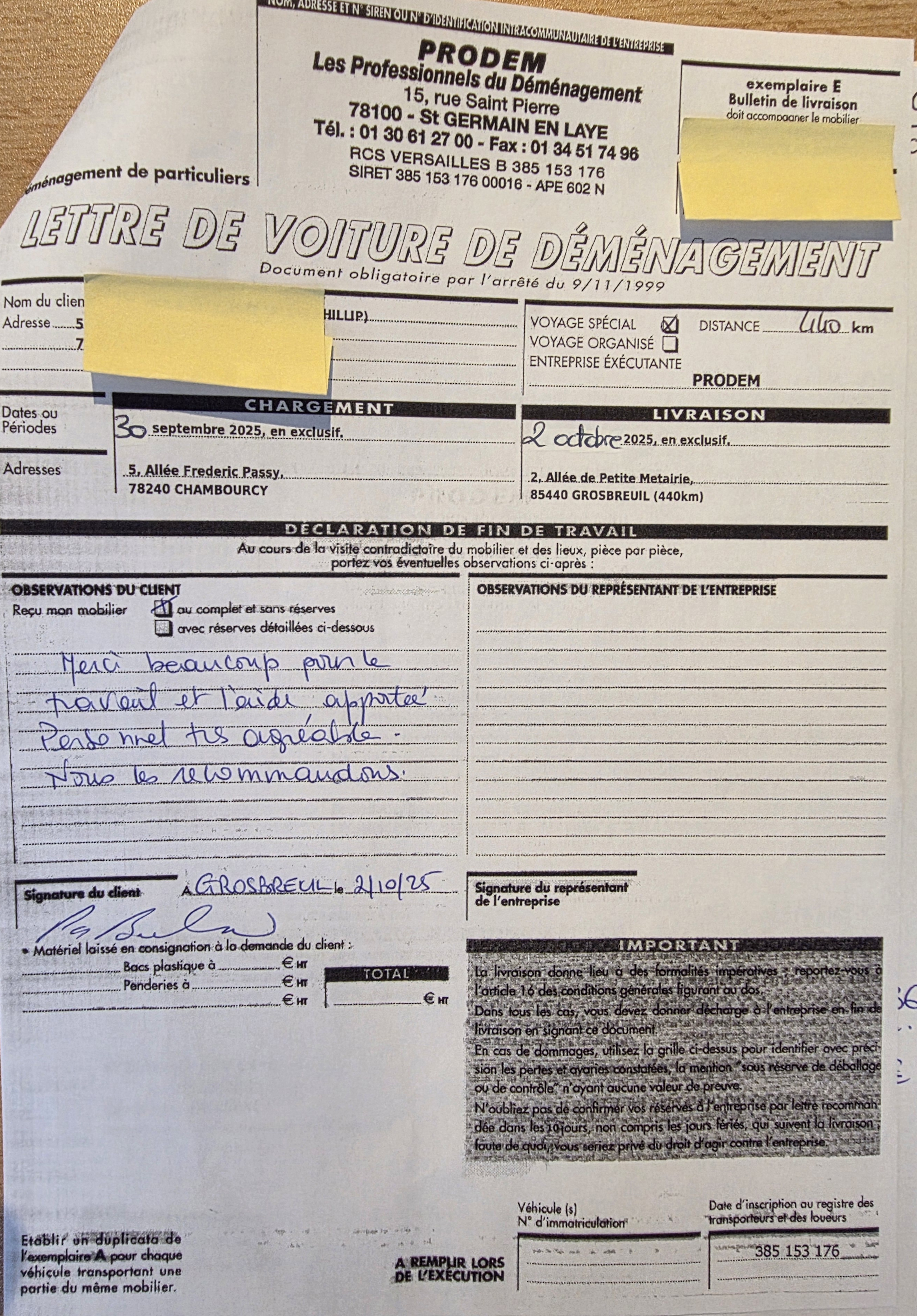 Déménagement Octobre 2025 de Chambourcy (78) à Grosbreuil (85).