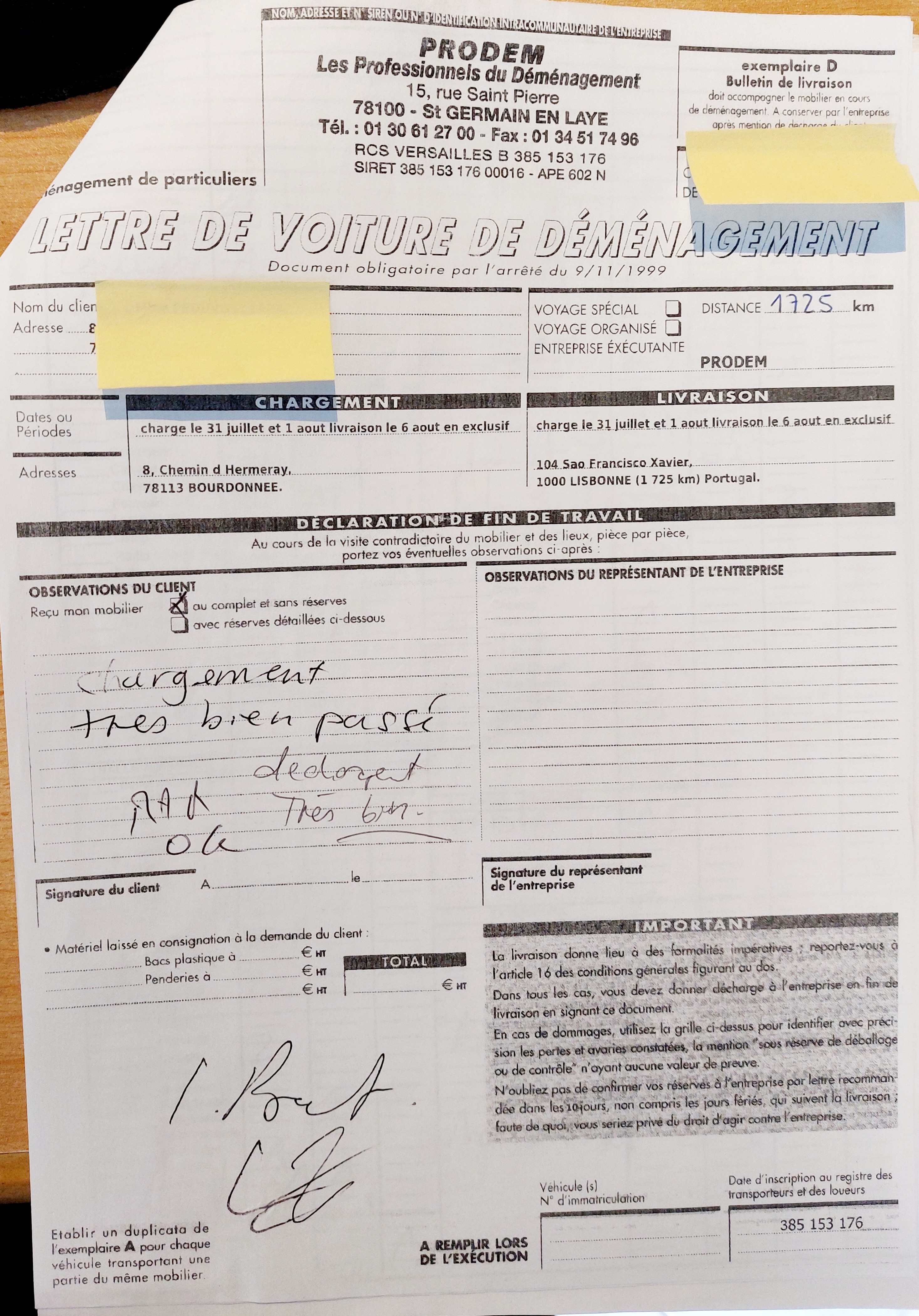 Déménagement Juillet-Aout 2025, de Bourdonée (78) à Lisbonne (Portugal)