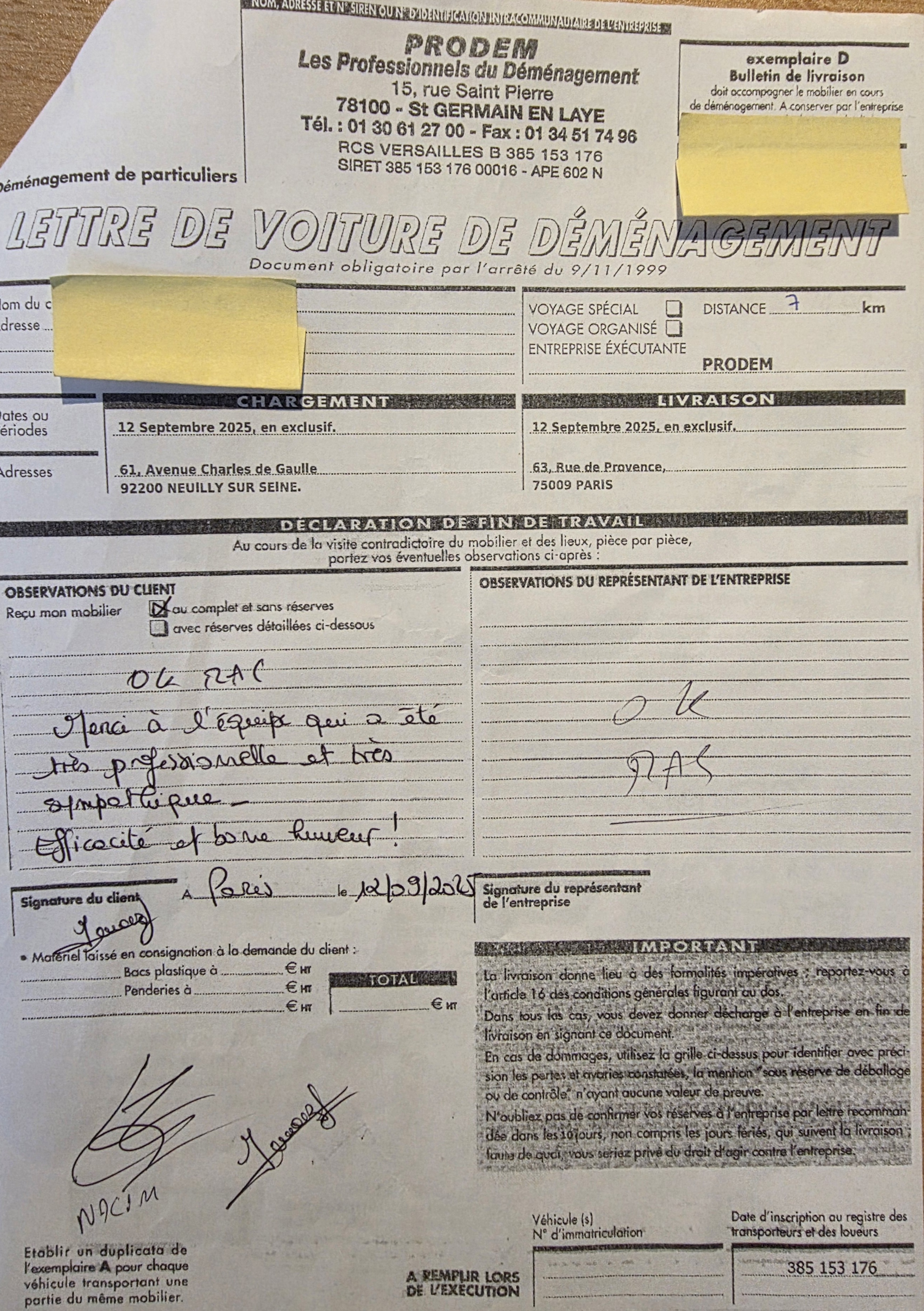 Déménagement Juillet 2025 de Paris (75) à Peymeinade (06).