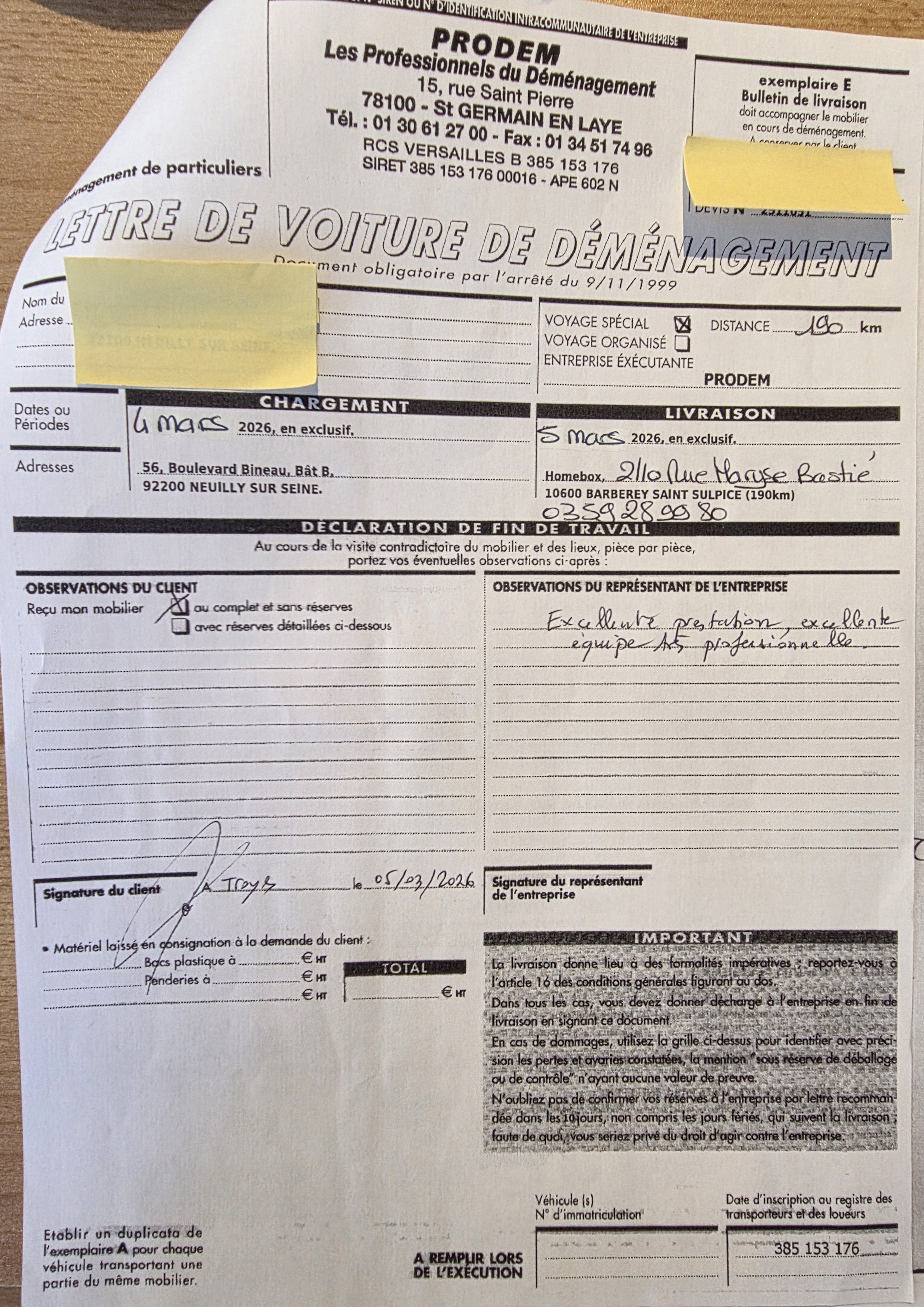 Déménagement Mars 2026, de Neuilly sur Seine (92) à Barberey Saint Sulpice (10).