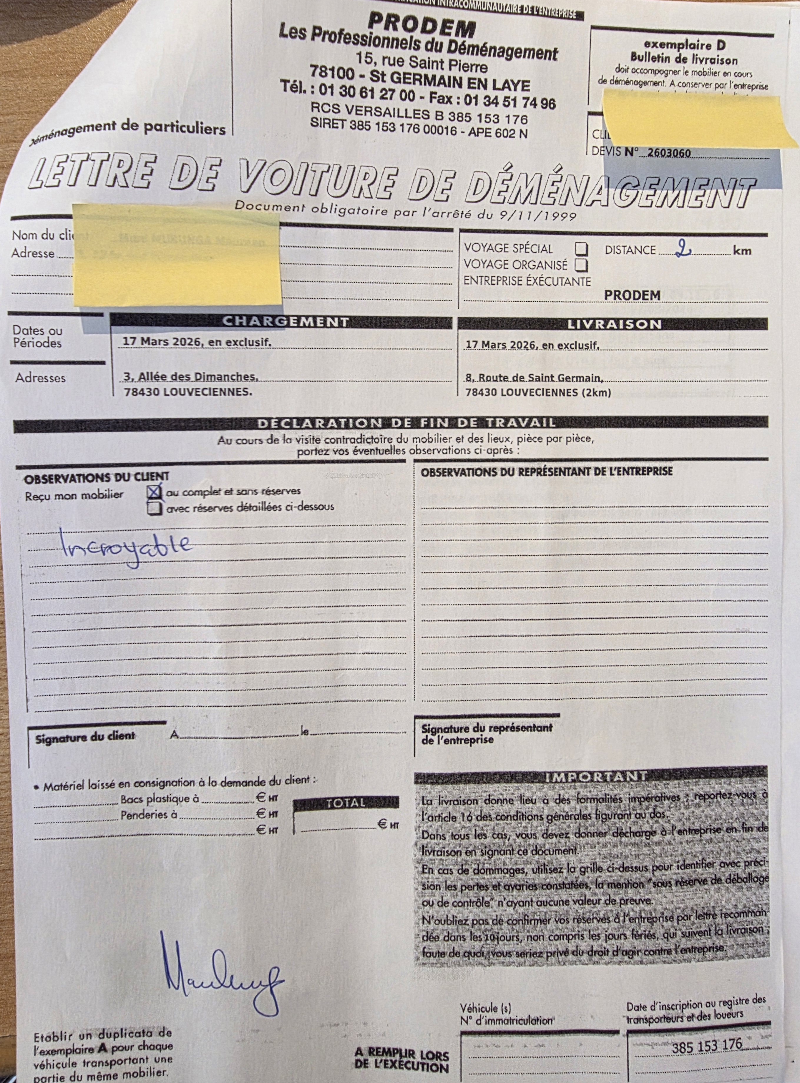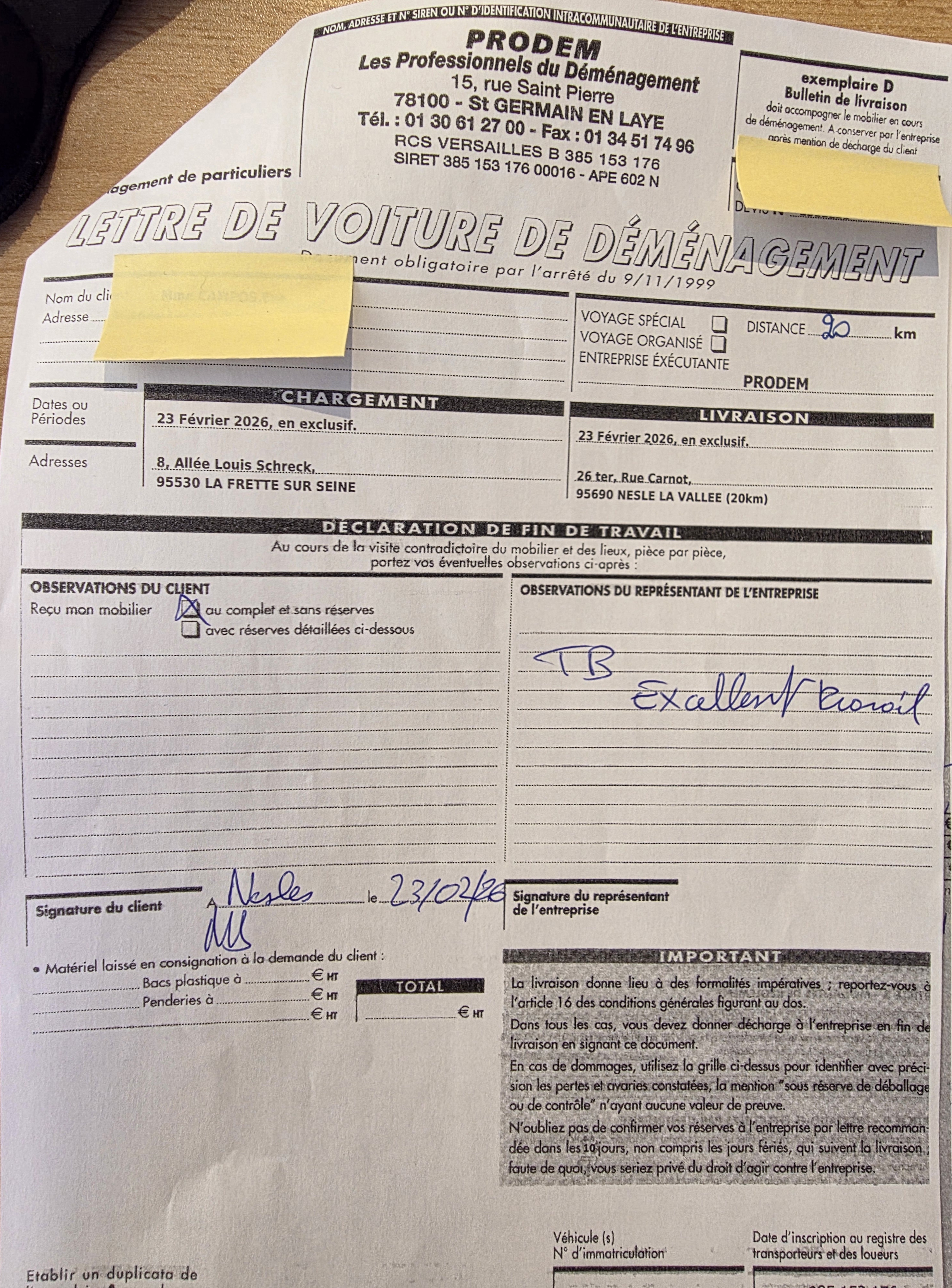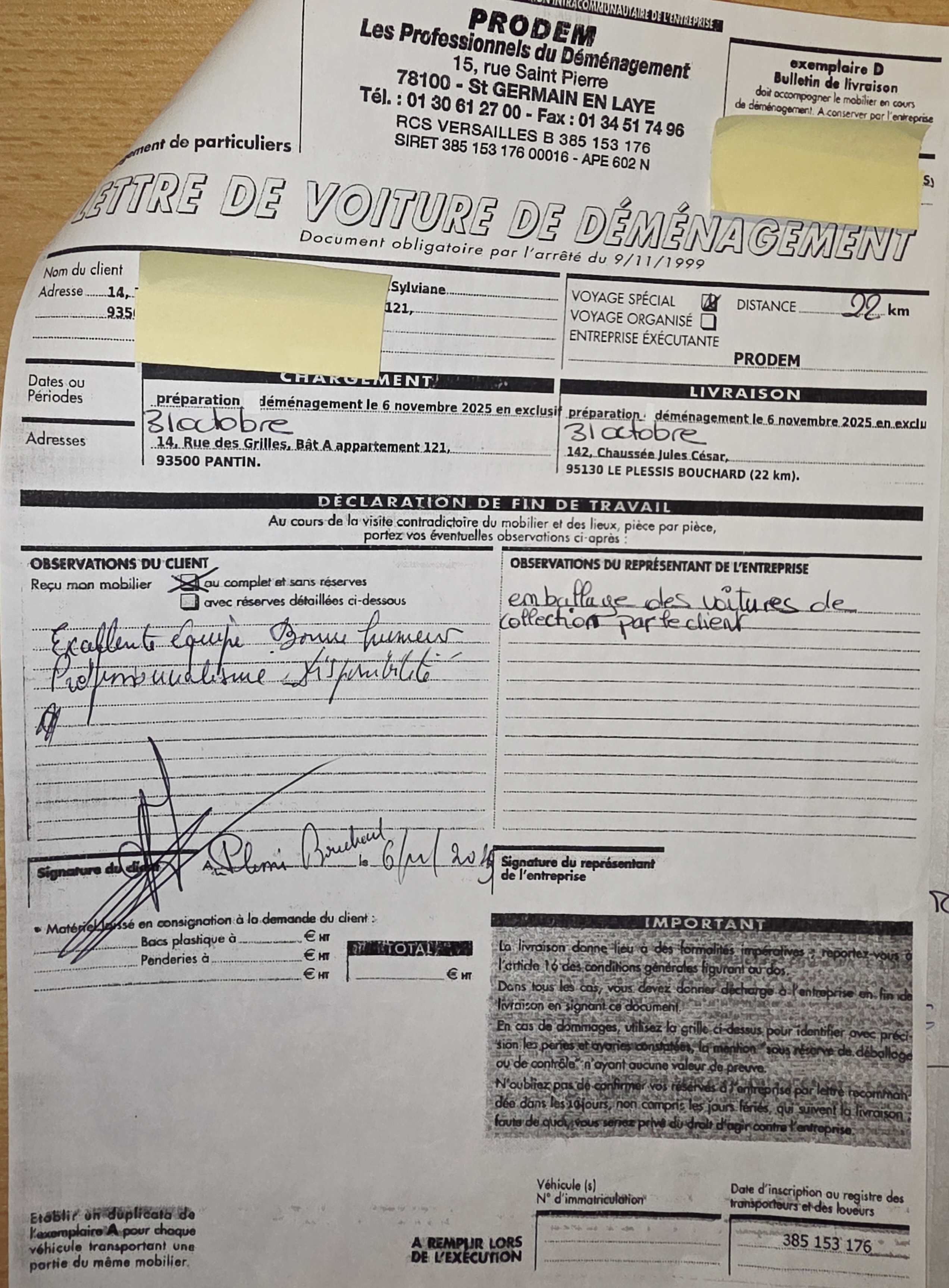 Déménagement Novembre 2025, de Pantin (93) au Plessis Bouchard (95).