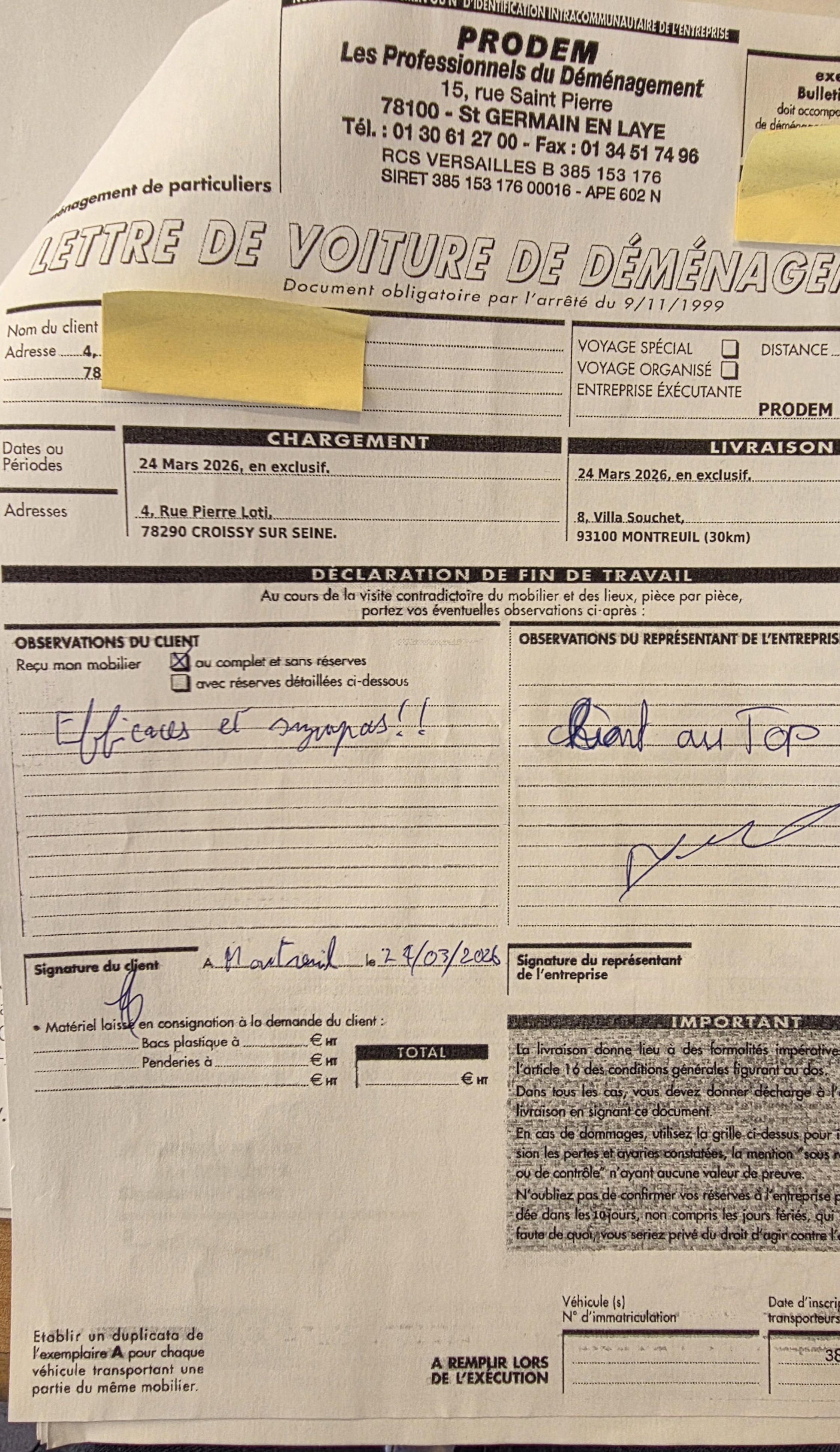 Déménagement Mars 2026, de Croissy sur Seine (78) à Montreuil (93).