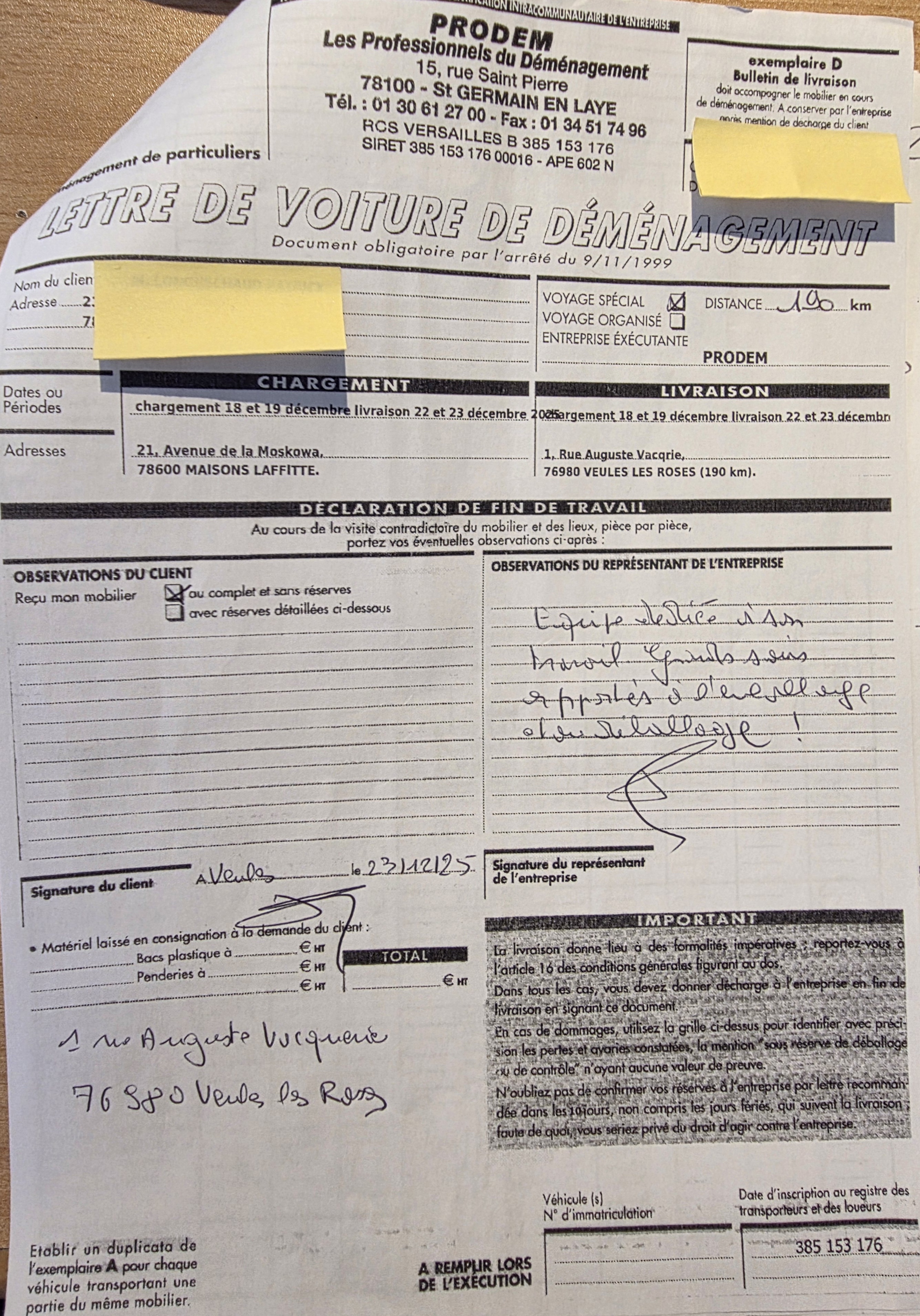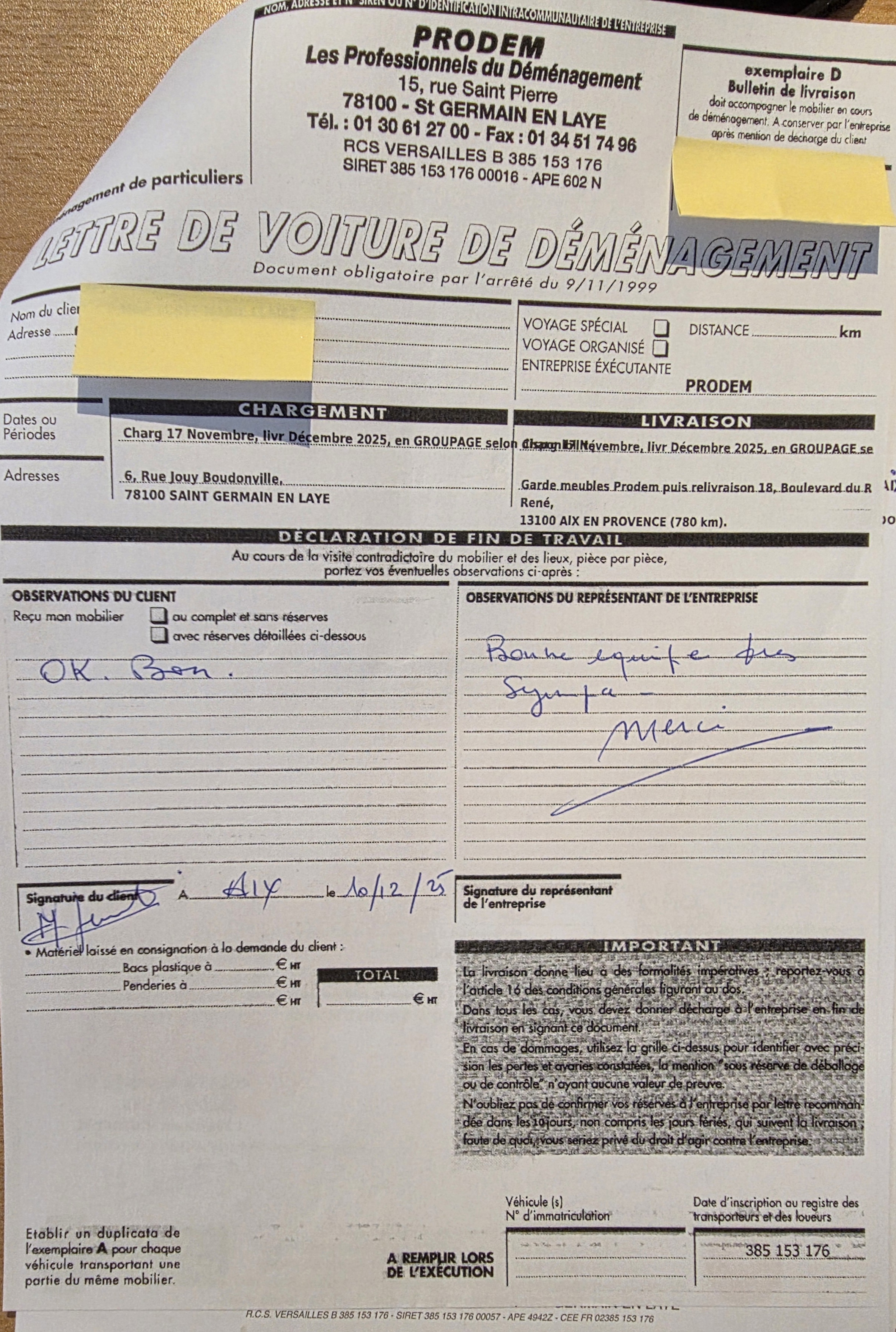 La société de déménagement ADP Prodem Déménagement des entreprisesDéménagement Décembre 2025, de Saint Germain en Laye (78) à Aix en Provence (13).