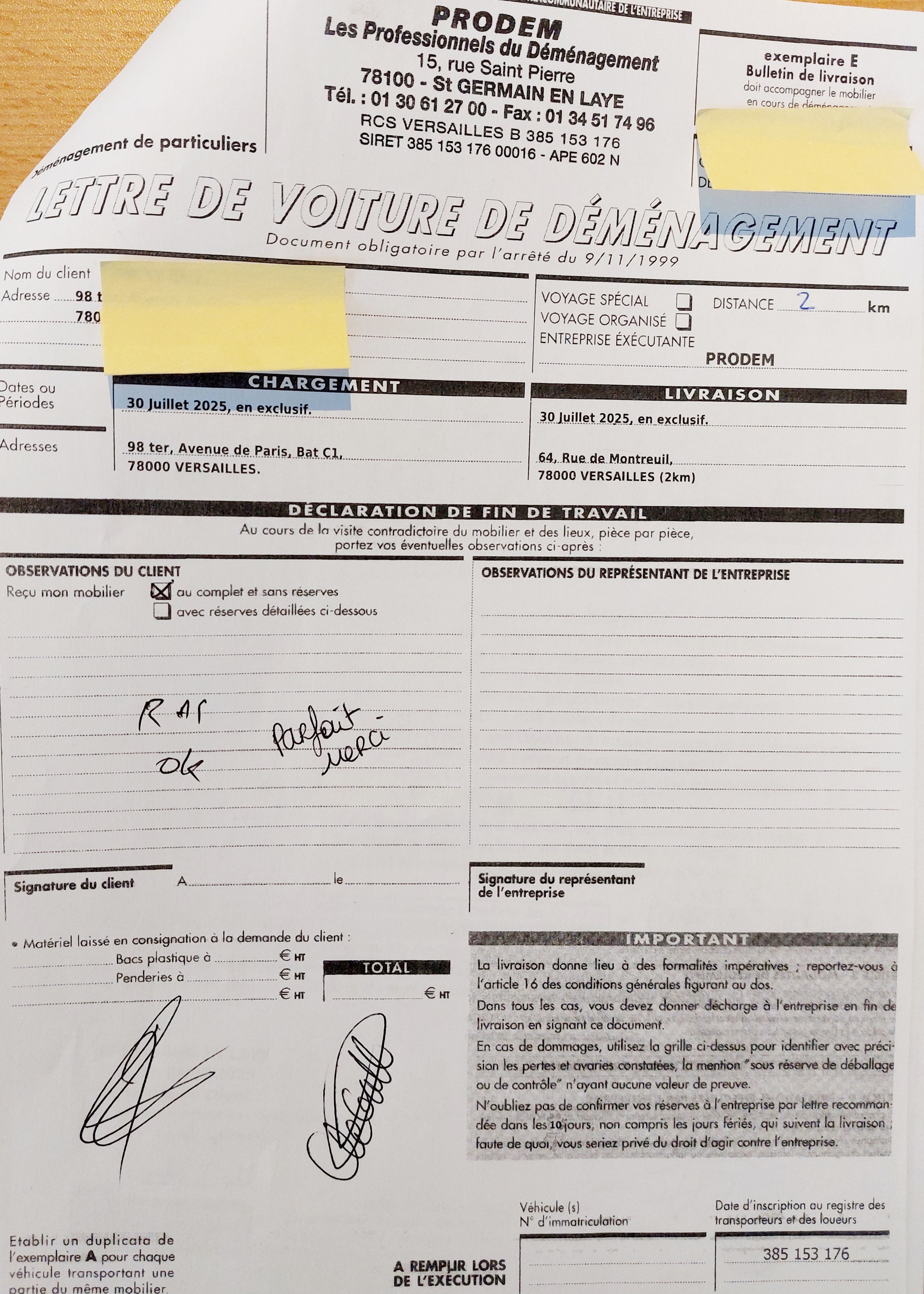 Déménagement Juillet 2024, de Versailles (78) à Ponts et Marais (76)