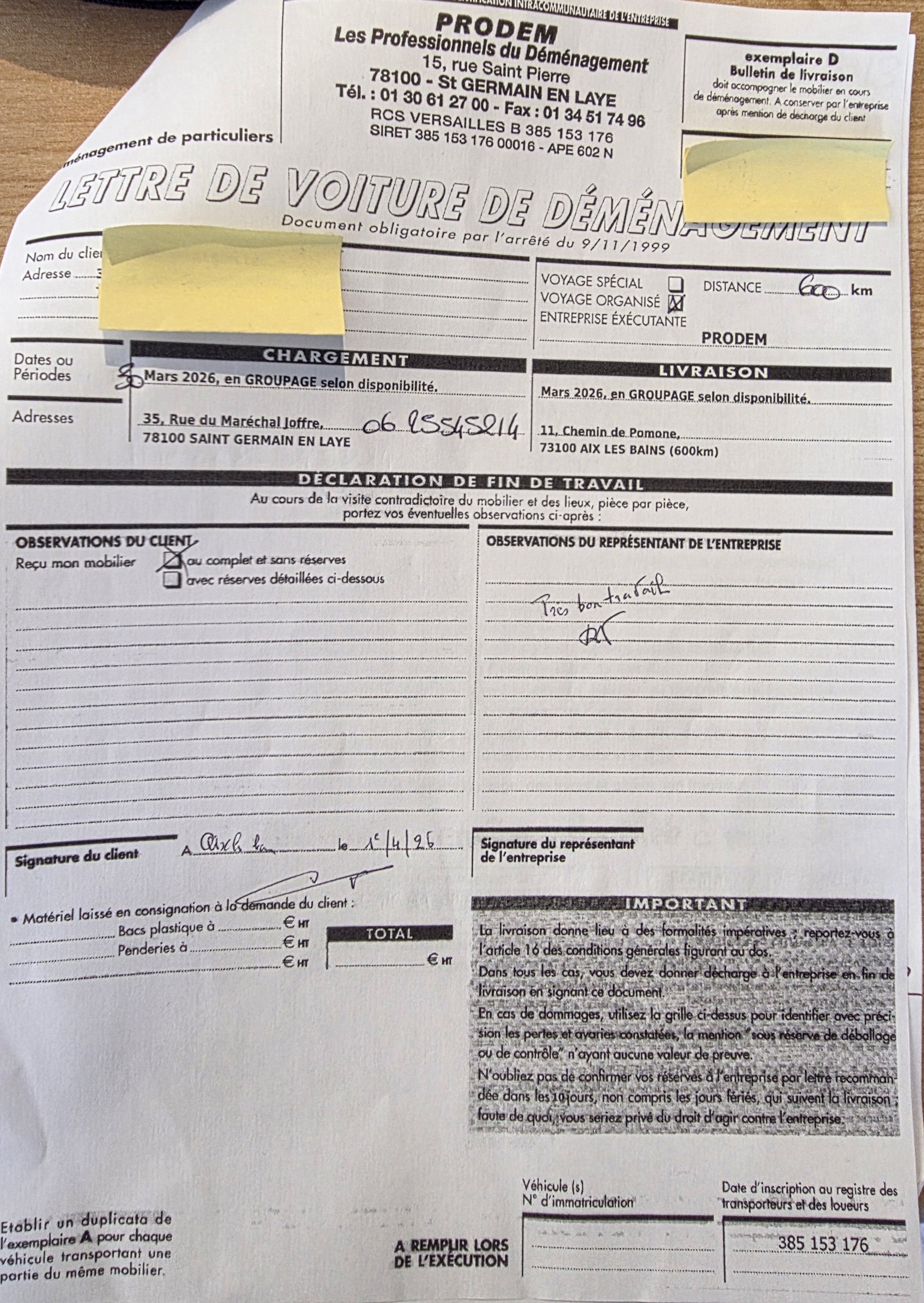 La société de déménagement ADP Prodem Déménagement des entreprisesDéménagement Avril 2026, de Saint Germain en Laye (78) à Aix les Bains (73).