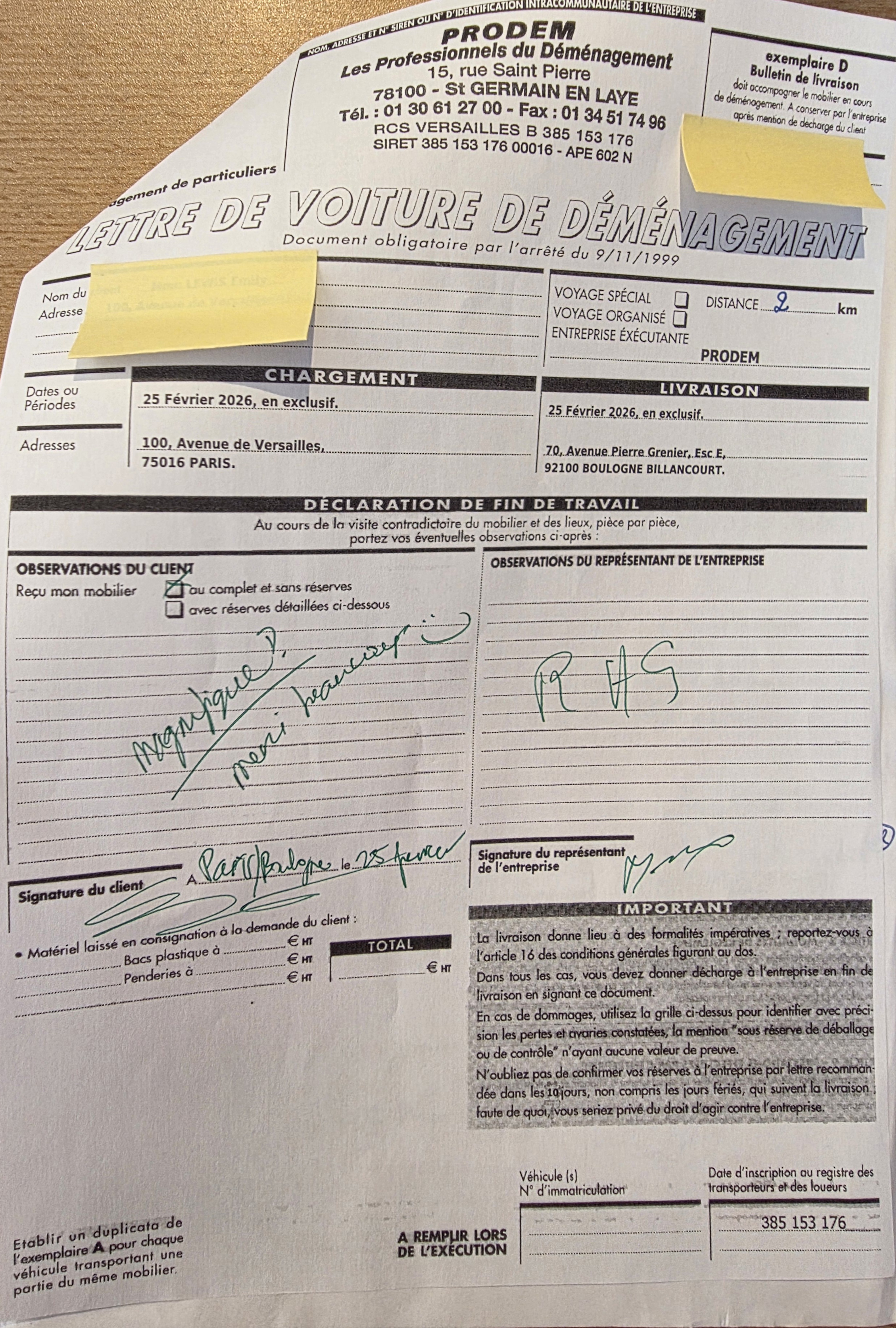 Déménagement Février 2026, de Paris (75) à Boulogne Billancourt (92).
