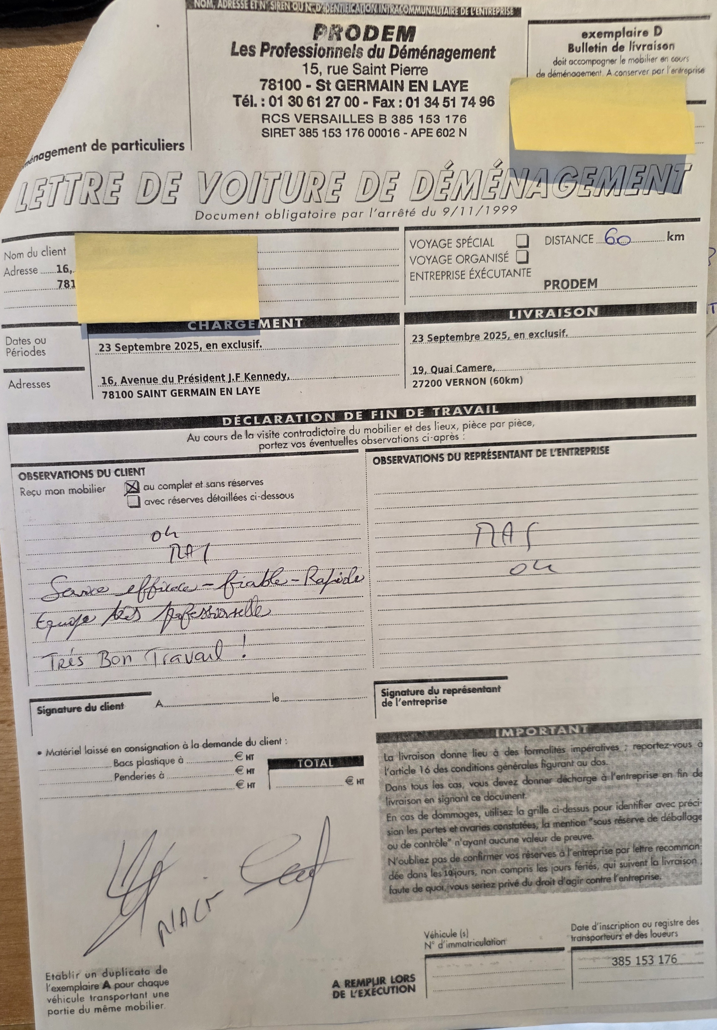 Déménagement Septembre 2025 de Saint Germain en Laye (78) à Vernon (27).